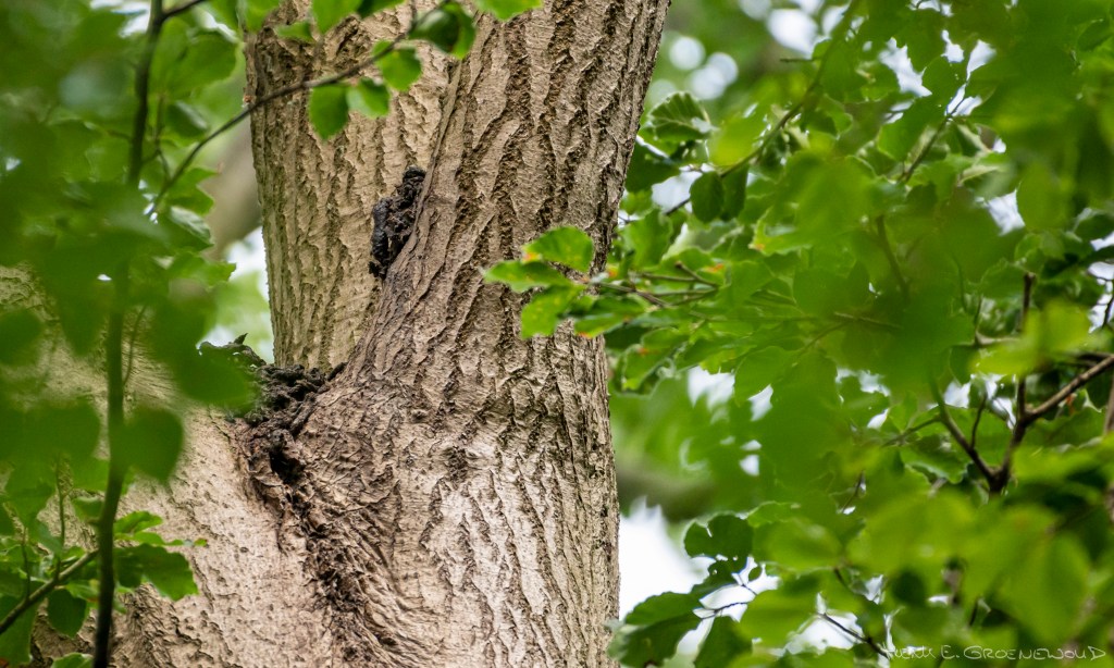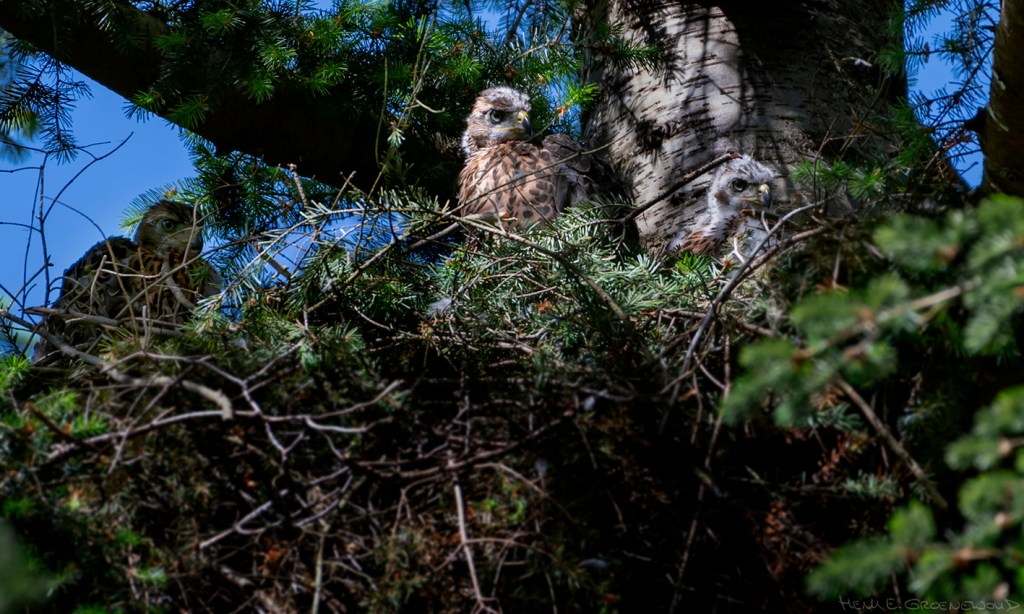 Ik weet het, nestfotografie is ‘not done’. Maar ja, ik kom er bijna elke dag langs op mijn lunchwandeling. Het enige wat ik hoef te doen is de camera even oprichten. Moeder is altijd in de buurt, ik hoor haar vaak en één maal is ze even komen kijken, laag over mij heen scherend.