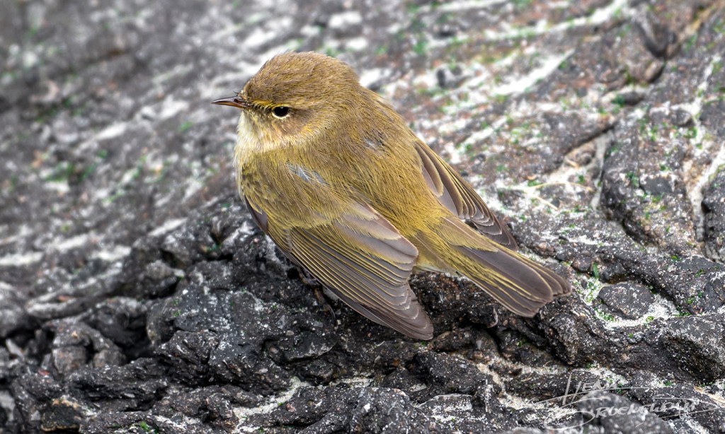 Toch vind ik het een prachtvogel.KBV’tjes worden ze wel genoemd: Kleine Bruine Vogeltjes. Van die zangvogeltjes die zich schuilhouden tussen het struikgewas en daarom niet goed te determineren zijn. Dit was een KGV’tje: een Klein Groengeel Vogeltje. Er zat een kleine familie die alleen hoge contactroepjes piepten. Vanwege de kleur dacht ik aan een fitis; wel gek hier op de kale pier want fitissen zijn van bos en park. Thuis nog maar eens goed gekeken en verdraaid, hij had zwarte pootjes. Dus geen fitis maar een tjiftjaf. Net zo gek, want die zitten normaliter óók in het struikgewas. En om het extra moeilijk te maken: tjiftjafs zijn gewoonlijk weer niet zo groengeel. KGV’tje blijft het dus maar, totdat hij een keer gaat zingen.