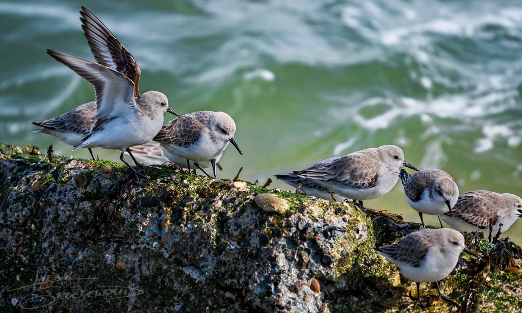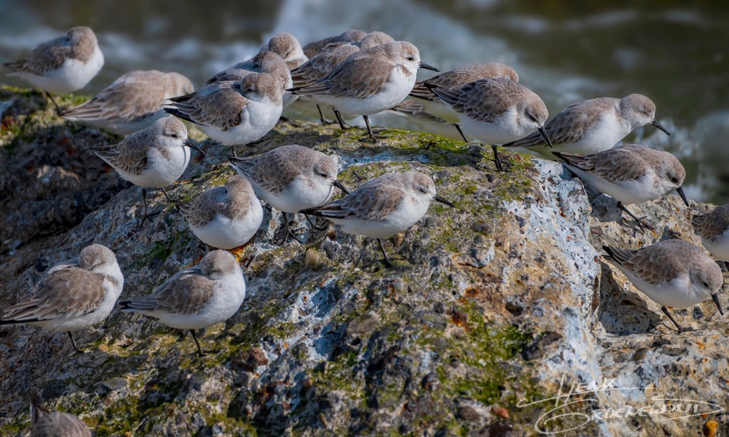 Gelukkig was er ook een zwerm drieteenstrandlopertjes. Die doen me altijd wat. Het lijken van die vrolijke beestjes, altijd druk aan het rennen en ondertussen ook bezig met elkaar.