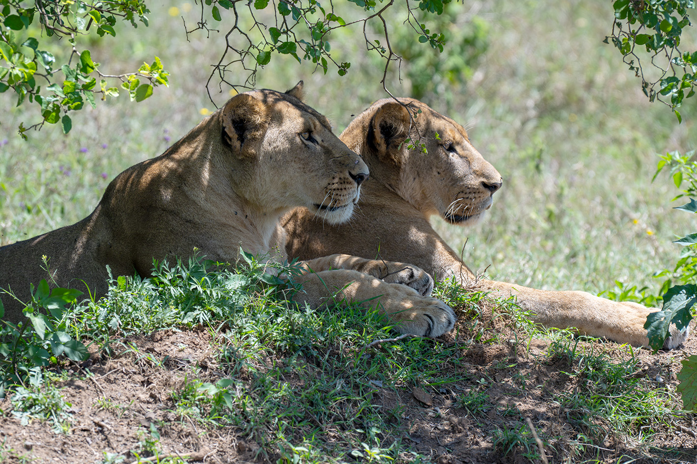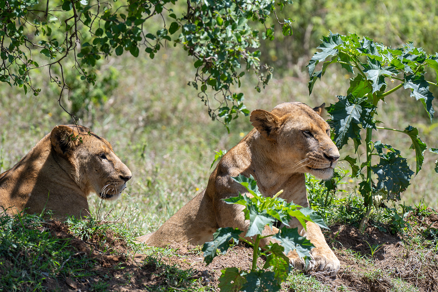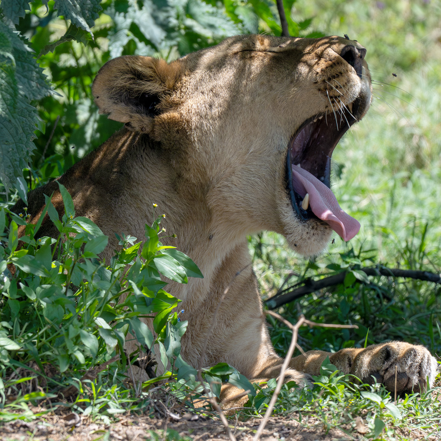 Neushoorns, leeuwen, giraffes