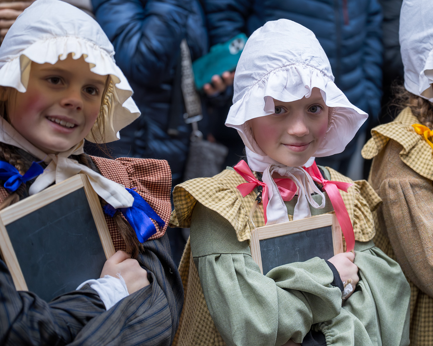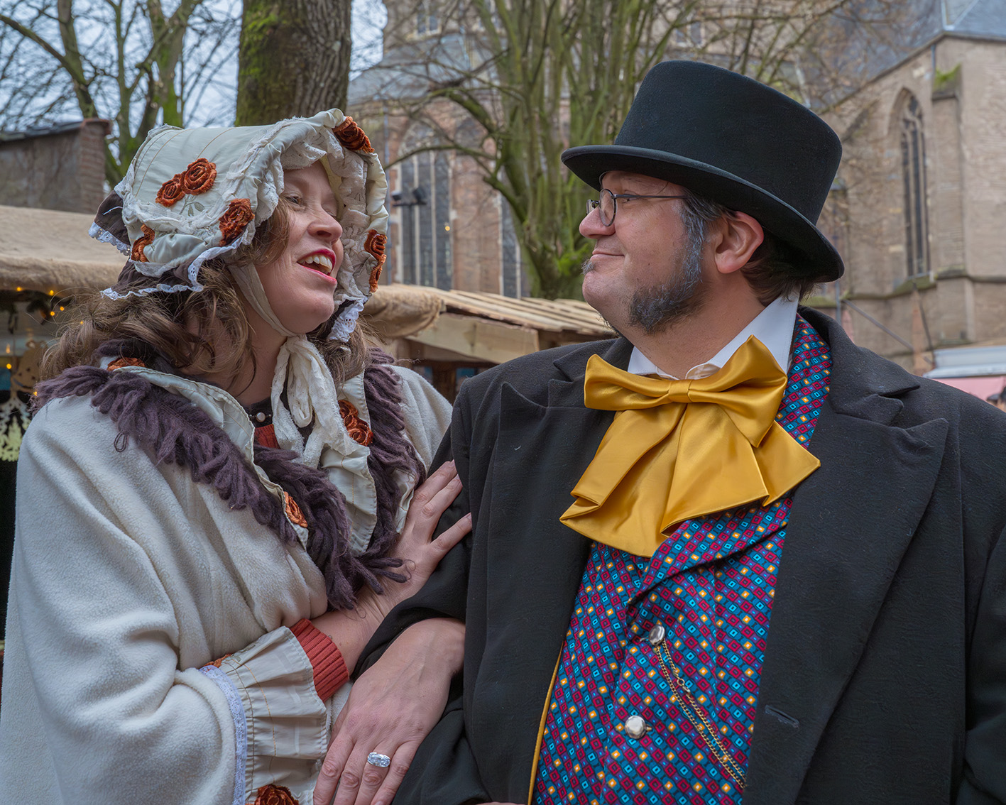 Een impressie van de feestelijke verkleedpartij van de stad Deventer: Het Dickens festijn begin december 2025, waarin het Bergkwartier werd omgetoverd naar vroegere tijden. Geïnspireerd door de verhalen van Charles Dickens en met veel kleurrijke anachronismen