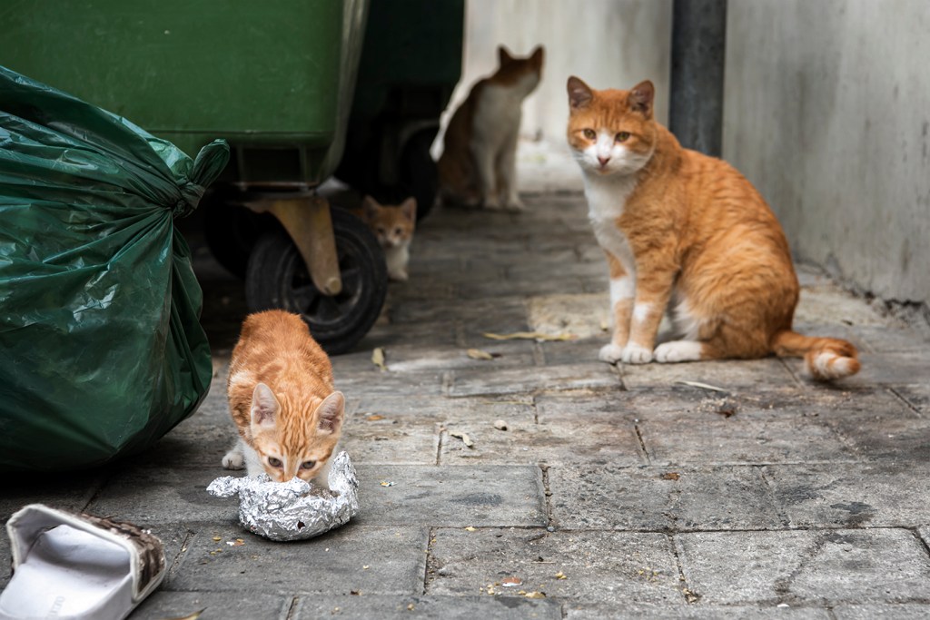 Cats everywhere in Nicosia. Mainly stray cats. Plenty of bowls with cat food and water in the streets, but the cats know exactly where to find a decent meal.