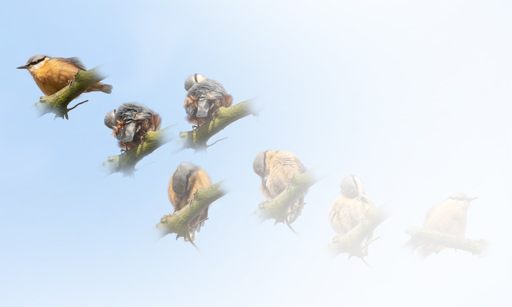 Ondertussen staren mij van alle kanten ogen aan. De wereld is interpretatie, en wat is de interpretatie van al die ogen? De kleine bonte specht werkt aan een nieuw hol, kijkt even op en besluit dat ik ongevaarlijk ben. Hij hakt door.