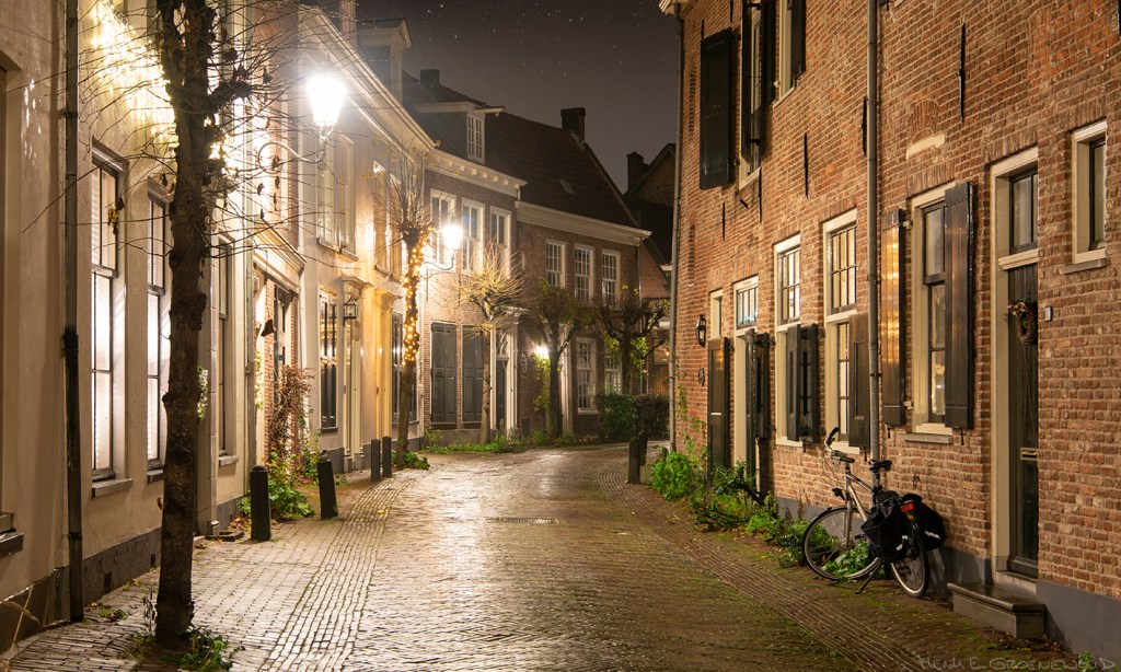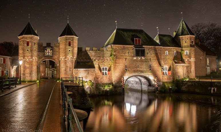 Sneeuw! Heel even maar, met de eerste vlokken in de middag en in de avond alweer regen. Net genoeg voor een klein wit dekje en wat fraaie winterbeelden. In het donker heb ik Amersfoort bezocht, weer even naar de Koppelpoort. De tijd was maar kort en ik hoopte zó op een paar mooie romantische plaatjes. En ja, kijk eens! Romantischer kan een fotoshoot toch niet zijn?