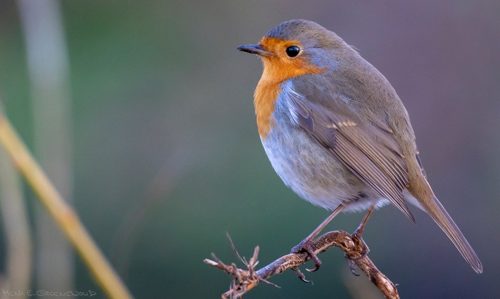 De roodborst: in eerste instantie dacht ik: hij zit stil, saai! Maar het is de achtergrond die me over de streep trekt. Een paar takjes, zacht kleurig bokeh. Dit soort zitfoto’s wordt massaal gemaakt, maar qua sfeer bekoort de foto me toch.