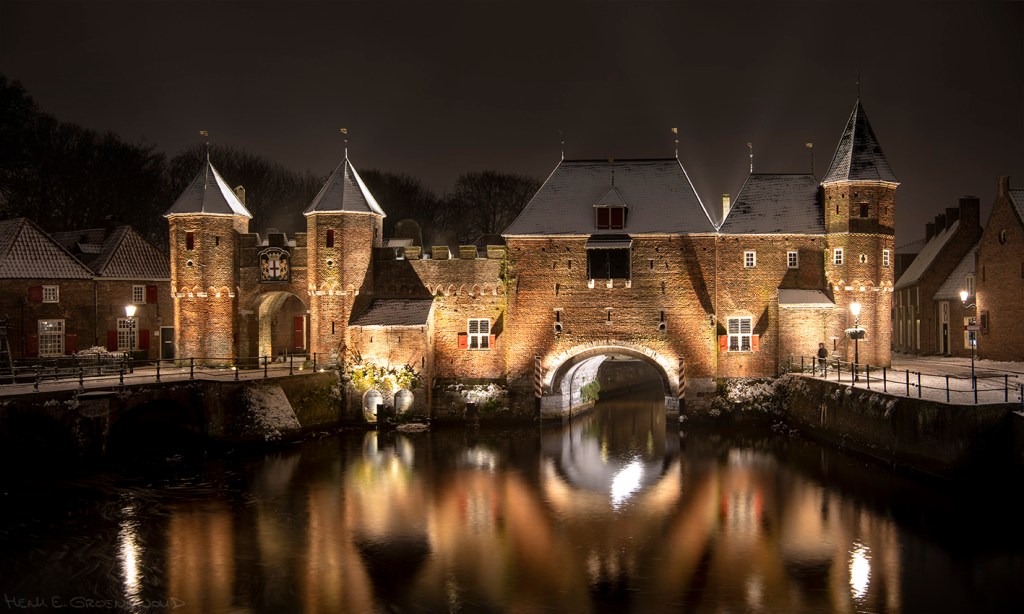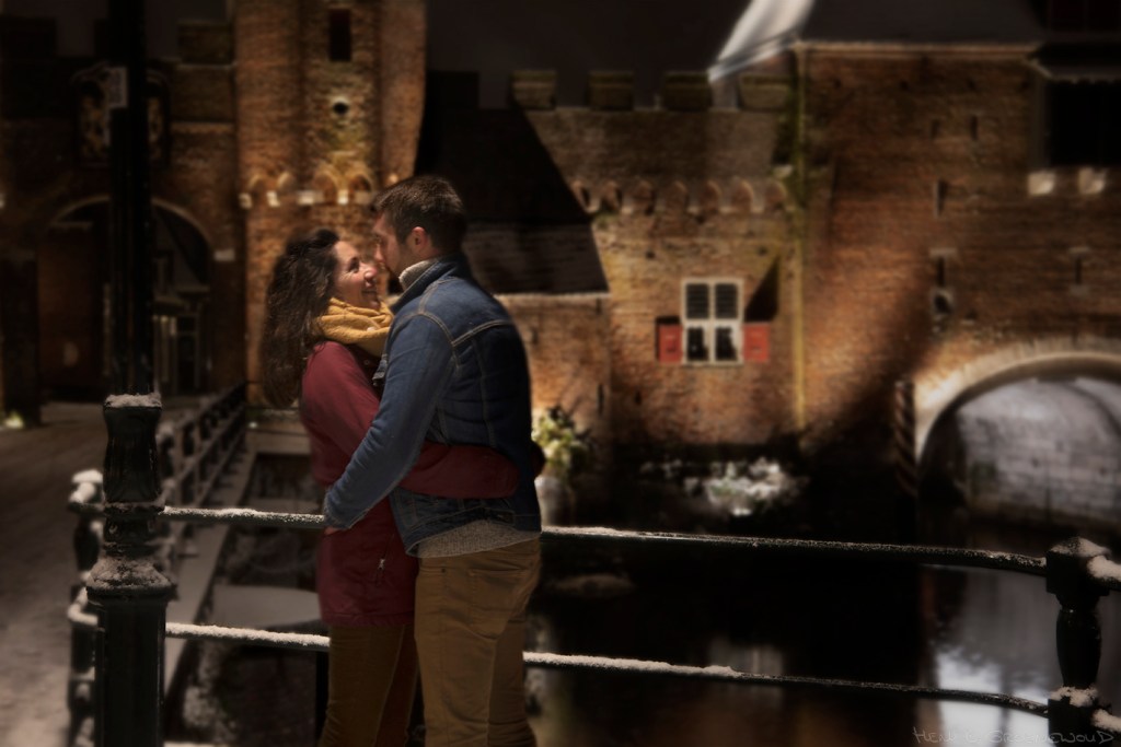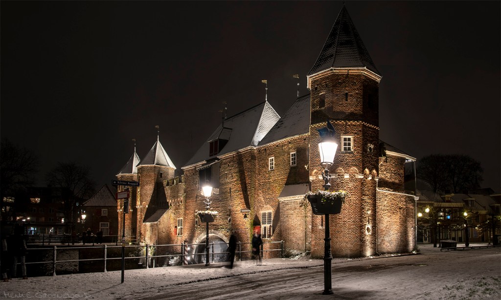 Sneeuw! Heel even maar, met de eerste vlokken in de middag en in de avond alweer regen. Net genoeg voor een klein wit dekje en wat fraaie winterbeelden. In het donker heb ik Amersfoort bezocht, weer even naar de Koppelpoort. De tijd was maar kort en ik hoopte zó op een paar mooie romantische plaatjes. En ja, kijk eens! Romantischer kan een fotoshoot toch niet zijn?
