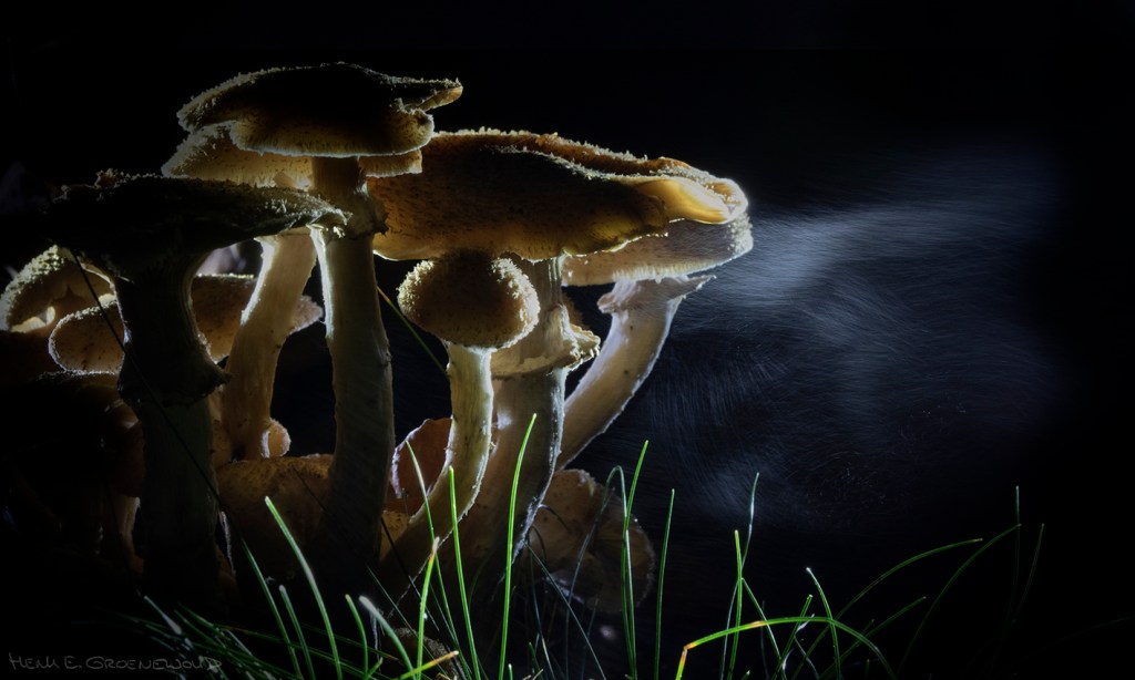 I didn’t go back until two days later. And what I hoped for, succeeded this time: catching the spores being spread by the fly agaric. There is a lot of Photoshop in this photo, but the spores are really real! Wonderful to experience the magic of the forest this way.
