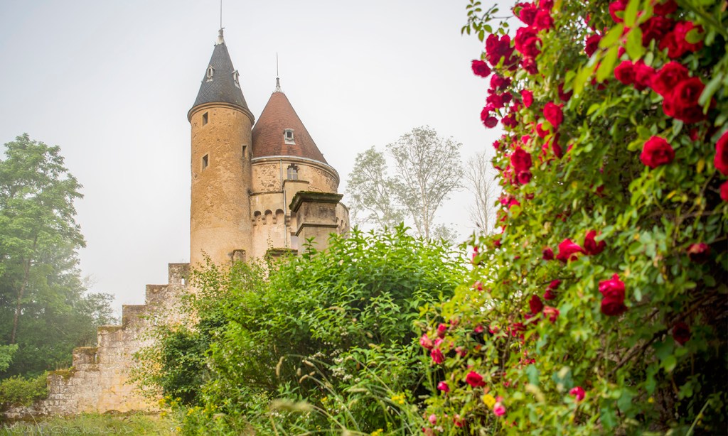 Chateau Valogne was een verademing. In meerdere opzichten een tussenstop op deze zwerftocht. Ik genoot van de heuvels van de Morvant en de vele planten en dieren die er waren te zien. IJsvogels scheerden over de rivier, grauwe klauwieren postten op de telefoondraden, zwarte roodstaarten hadden hun nest boven één van de houten karren, knautia’s bloeiden, kleine parelmoervlinders fladderden rond en waterjuffers – ik denk azuurjuffers, maar kon de fel oranje stigmata niet plaatsen – waren volop bezig met hun paringsrituelen. En de rode rozen… met de kennis van nu beschouw ik die als een aankondiging van wat later zou komen.