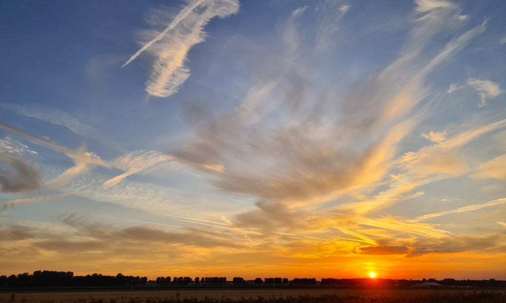 Kijk toch wat waanzinnig mooi deze wereld is. Een gouden zonsondergang, extra bijzonder vanwege het telefoongesprek dat ik zojuist voerde